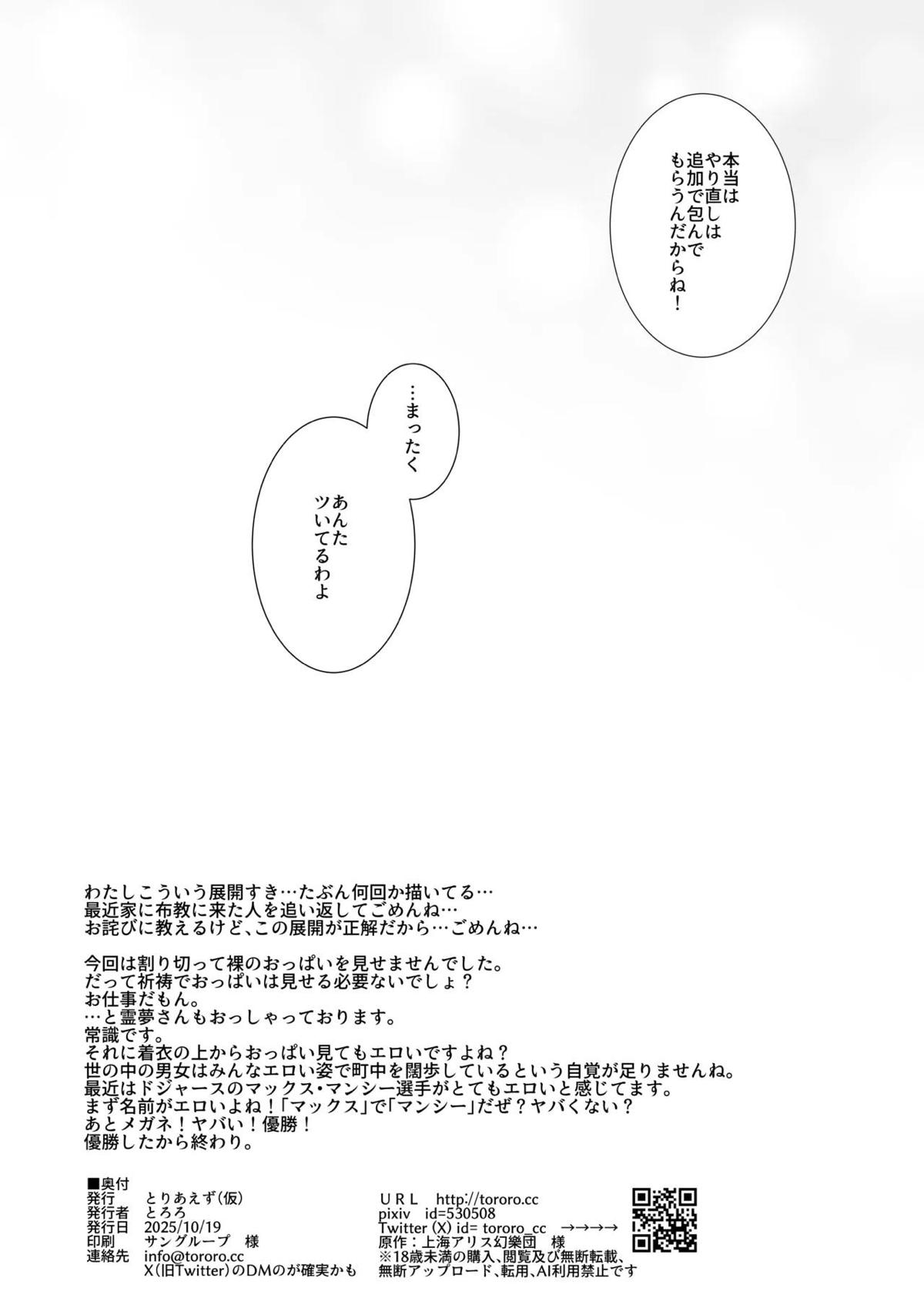 霊夢さんはおっぱいを育てたい
